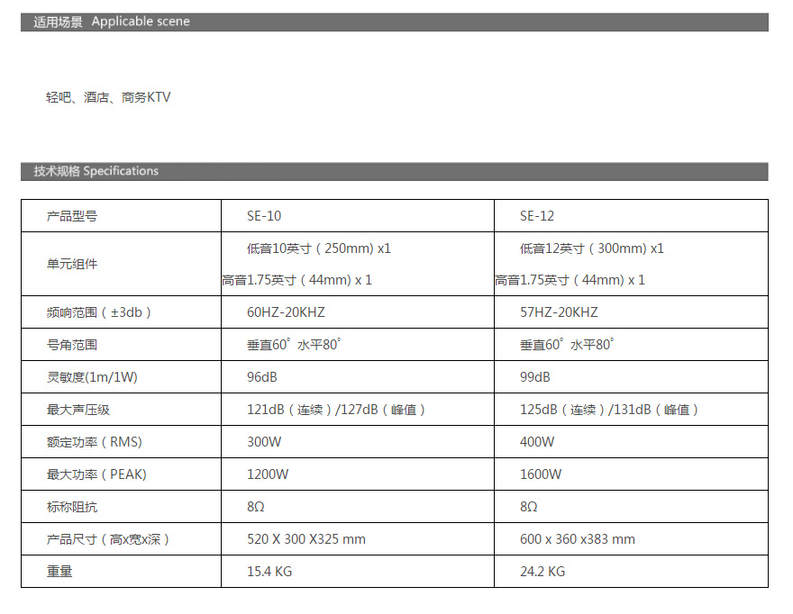 特色:低頻飽滿,彈性十足,人聲磁性豐富,高音采用意大利進(jìn)口單元,高頻結(jié)實(shí)透亮 空間營造真實(shí); 吊掛設(shè)定齊全,可滿足各種特殊環(huán)境的安裝; 采用高強(qiáng)度的特殊油漆,防滑耐磨、不變色、*如新; KTV入麥輕松,K歌自然流暢; 音場(chǎng)寬廣,立體縱深感十足 讓自己置身于音樂的空間。
