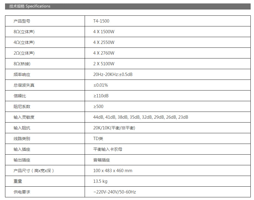特色:一款高性能的開關(guān)電源功放,結(jié)構(gòu)緊湊,合理; *元器件,搭配先進(jìn)合理的電路設(shè)計,確保功放的高保真、高阻尼系數(shù),使音質(zhì)更加完美;每個通道都具備獨(dú)立可調(diào)的峰值輸出電壓,使放大器可以非常方便的驅(qū)動不同功率大小的揚(yáng)聲器;智能保護(hù)電路提供先進(jìn)的技術(shù)來保護(hù)內(nèi)部線路和連接負(fù)載,可以在極端條件下保護(hù)揚(yáng)聲器和放大器。